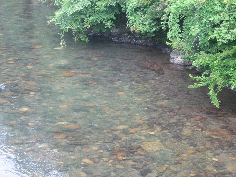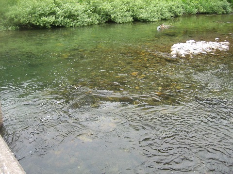 橋の上から見ると石が磨かれ群れ鮎は見えましたが、